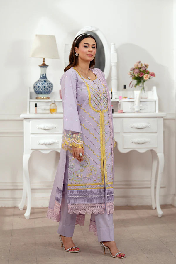 3-Piece Embroidered Lawn Dress with Cotton Net dupatta