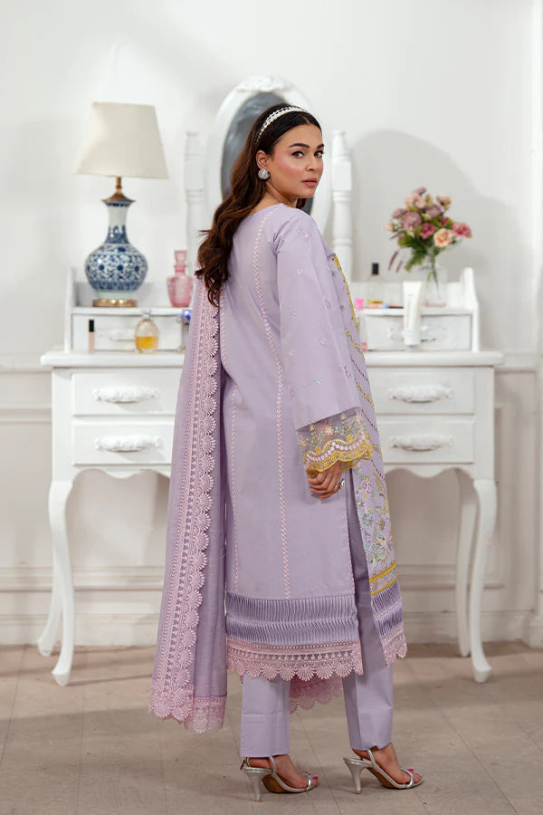 Embroidered lawn 3-piece unstitched suit for women with a textured Tarkashi cotton net dupatta and floral pastel tones for effortless feminine charm.
