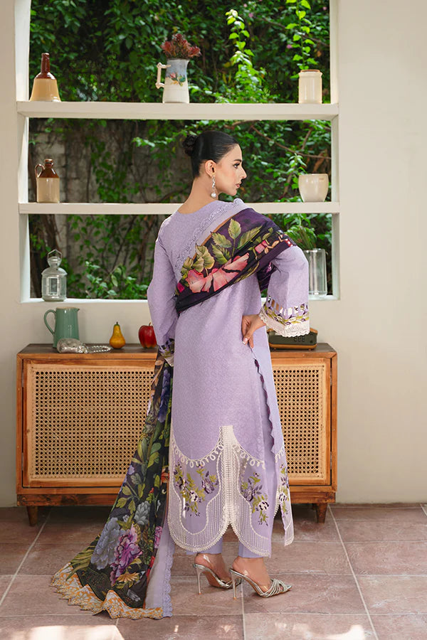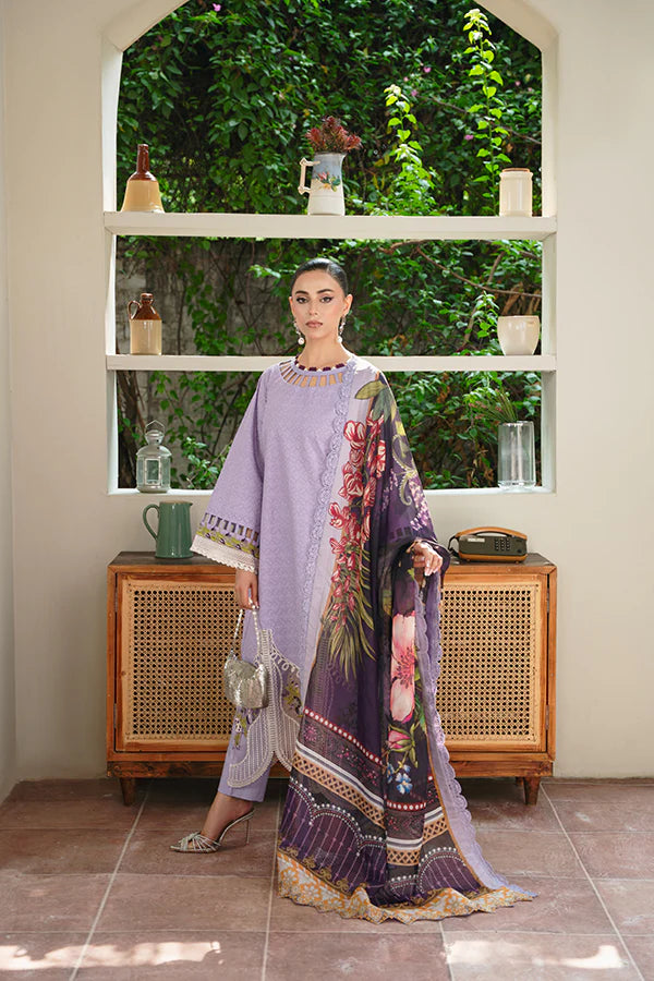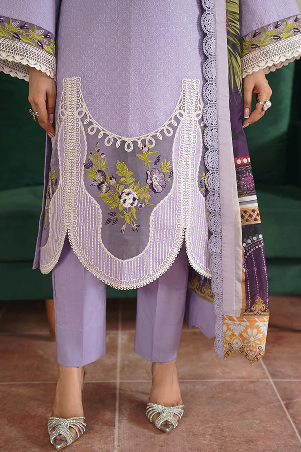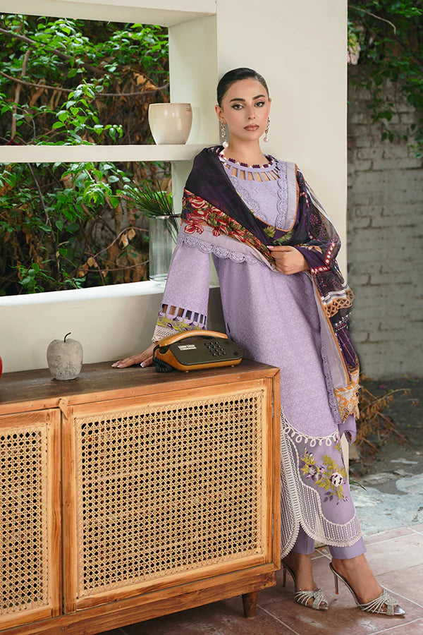 Lightweight, opulent, and full of lyrical movement, this beautiful lavender color dress for women is worn with a printed silk dupatta with heavenly cutwork pallus. The woman who exudes elegance, calm, and the classic fragrance of flowers is the ideal recipient of Lilla (B).