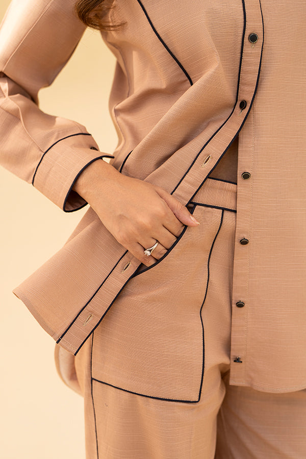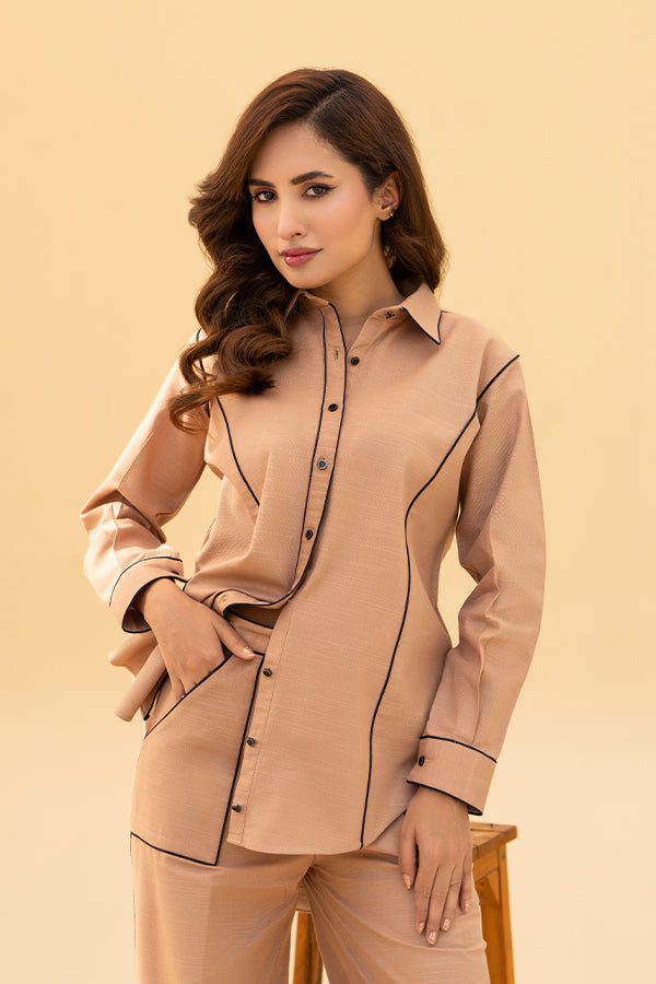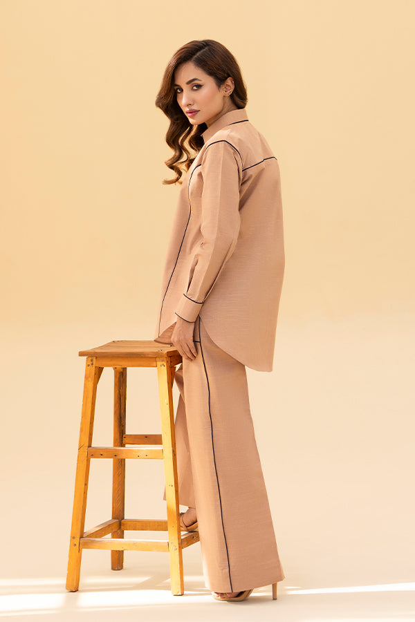 If you are office going or university then this skin khaddar dress can be your best choice for this winter. This zarlay women co-ord dress which has stylish modern shirts with wide leg pants specifically made for your elegant look. The lace present on the front button of the shirts keeps your look professional. This is the 2 piece stitched dress for women at very affordable rates. This adaptable co-ord set will enhance your wardrobe whether you are wearing it for a casual excursion or a day at the office.