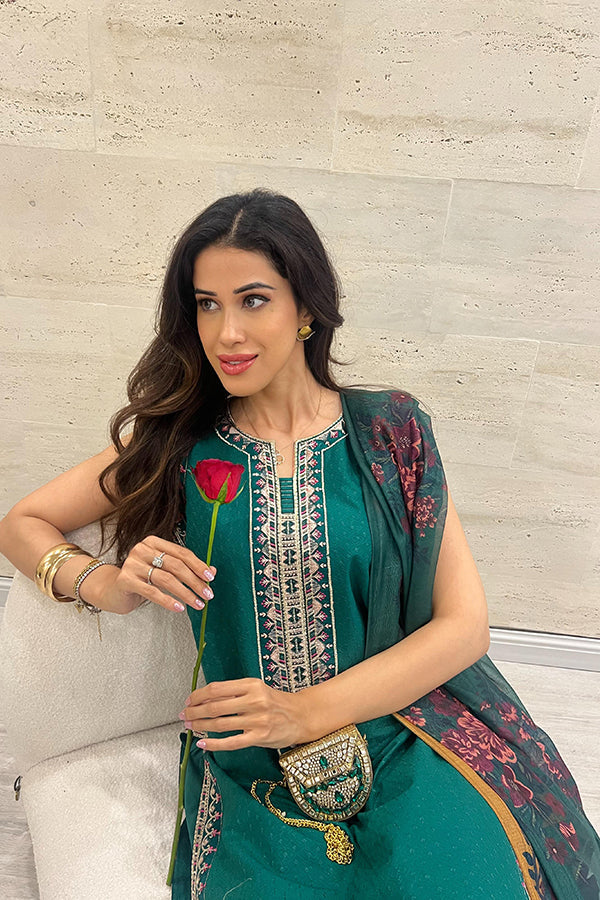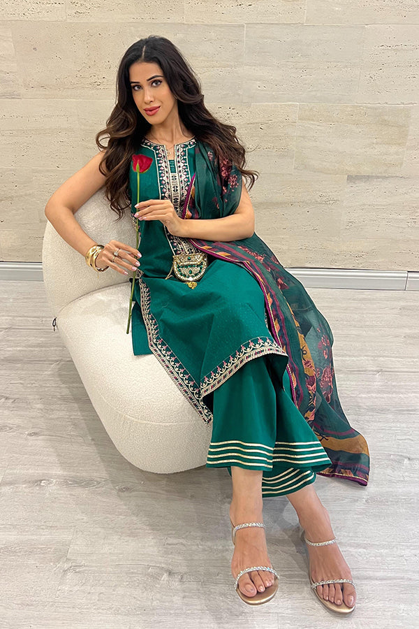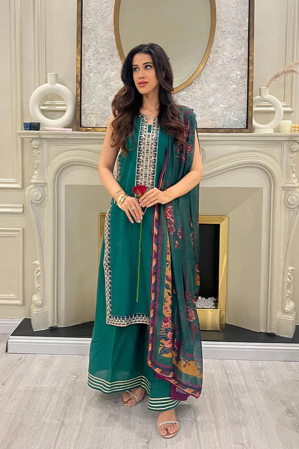 Chikankari Shajar Bottle Green - ZL-RZ-P-002