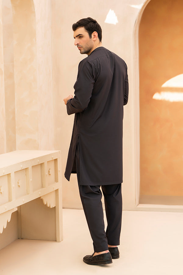 The down band collar, detailed round sleeves and pleats on the front provide a sense of modern look to this Dark Blue kurta pajama which is designed for modern men. It is ideal for any formal or festive occasion because of its straight hem, which lends a finishing touch. You can appear attractive without sacrificing comfort because of the mix of fabric's durability and comfort.