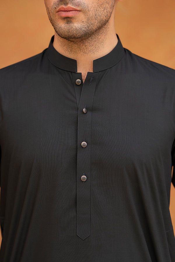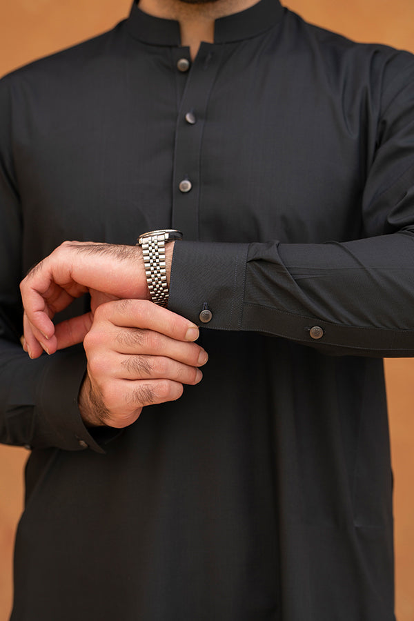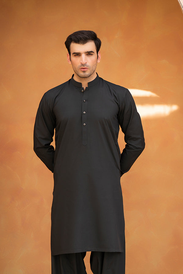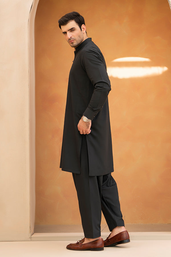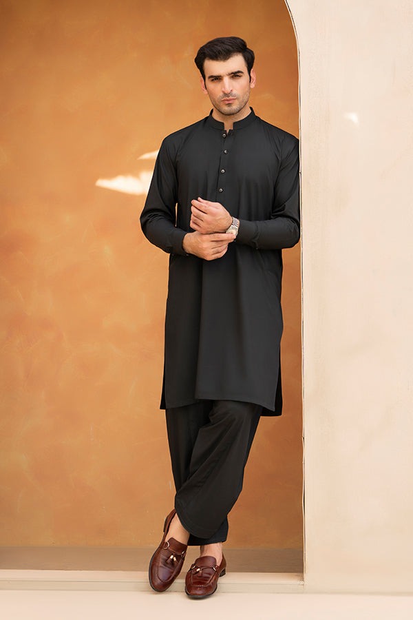 This Dark Forest Green Shalwar Kameez for men has a band collar and a visible button placket for a polished, elegant appearance. Its design is smart and modern. It is ideal for both family events because of its straight hem and cuffed sleeves which further add to its elegant appeal. This men's suit is the perfect pick for office wear because of the deep, rich color that gives the ensemble depth.