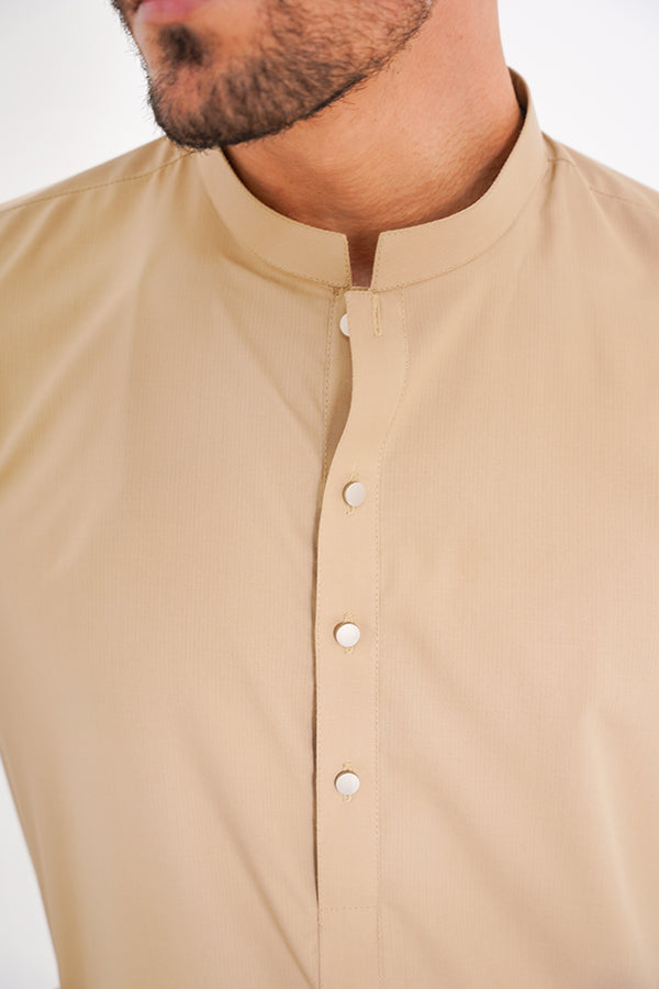 Designed for modern men who value tradition with style, this desert brown shalwar kameez from zarlay is a wardrobe essential. It comes with a smart band collar, neat button placket and full cuff sleeves, offering a balanced mix of elegance and comfort. Perfect for both daily wear and special gatherings it reflects timeless sophistication.