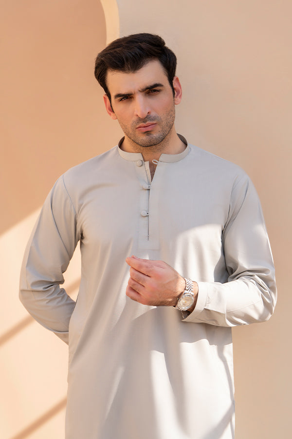 Tailored from premium cotton, this men wear provides a smooth texture and a relaxed fit. Its subtle foggy grey tone brings a sense of calm elegance, perfect for daytime events or evening gatherings.