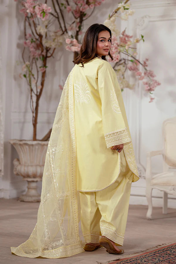 Lemon Yellow 3-Piece Lawn Dress with Organza Dupatta