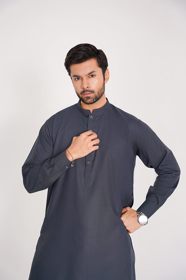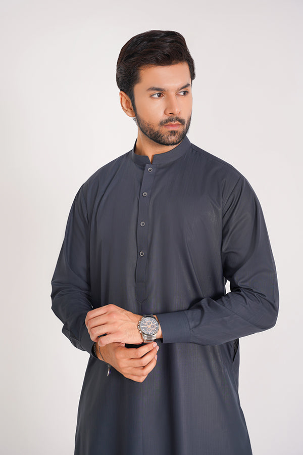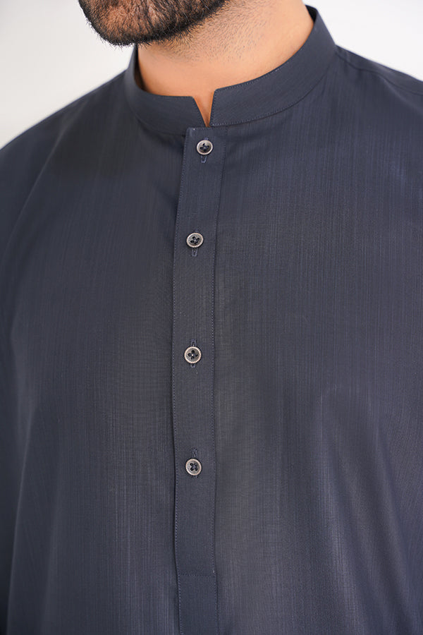 Details: Band Collar, Cuff Sleeves, Buttoned Placket, Straight Length, Stitched Finish