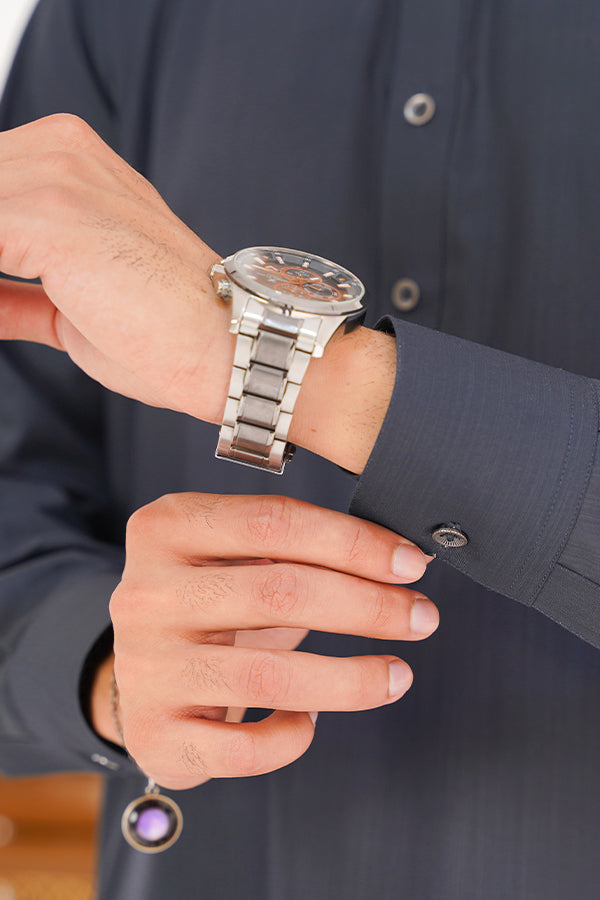 Midnight Blue Blended Suit for Men in Cuff Sleeves