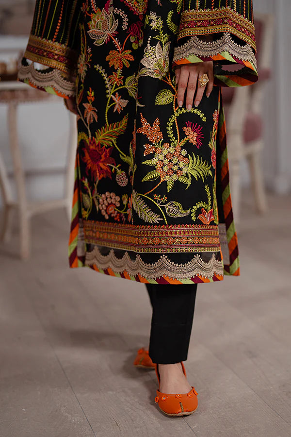 Nisa, like a lost symphony echoing through calm city streets, conveys the grace of a past well remembered. The shirt is set on a deep, dark lawn fabric and has boho-inspired flower embroidery in antique tones. Chain-stitched flowers flow smoothly over the cloth, lending a gentle, dreamlike quality. Rich, strong designs provide depth and complexity, resulting in an attractive blend of traditional and modern style.