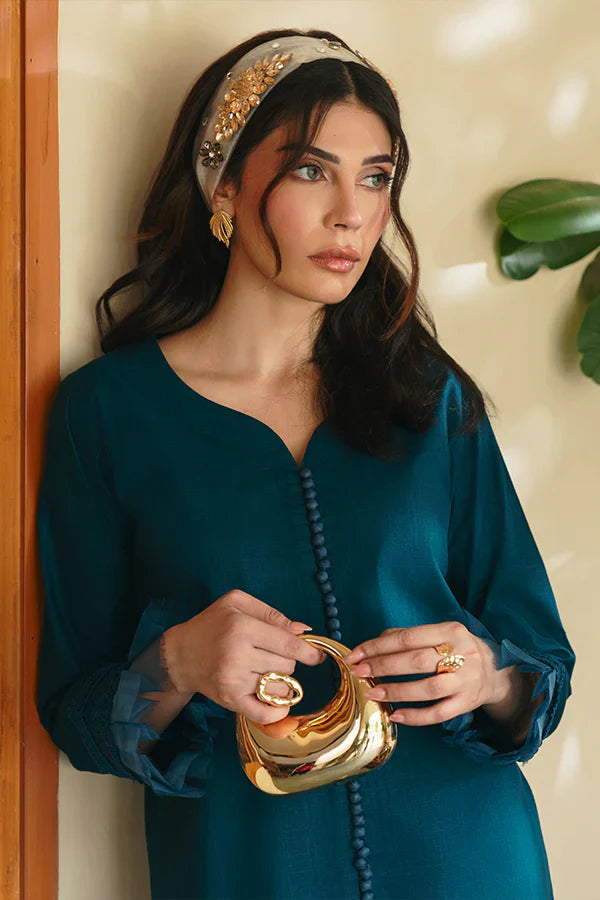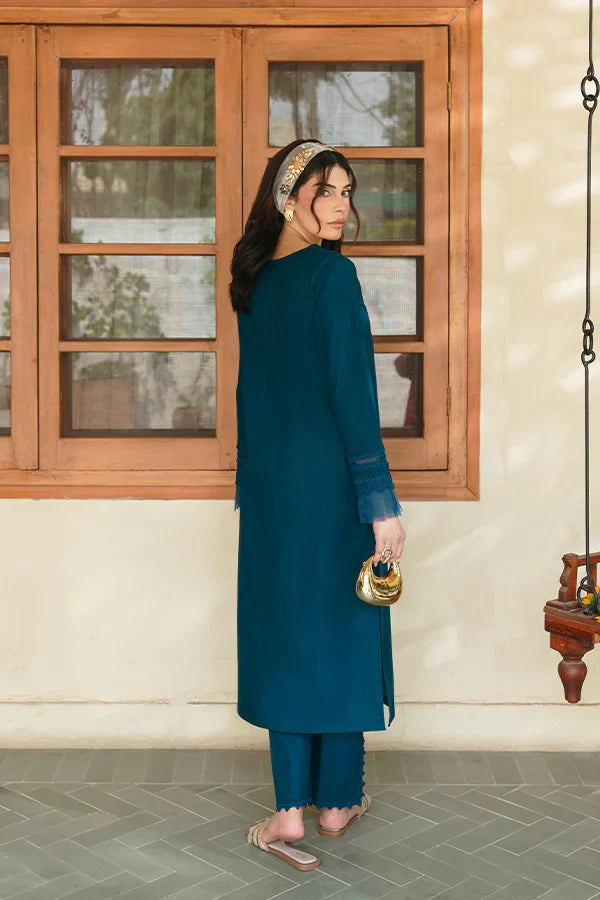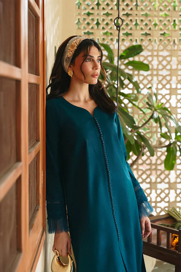 Enhance your personality with the best and attractive dress, Noir Dust. This 2 piece stitched outfit for all age women is made with intermix lawn fabric. Following a trending design with fresh and demanding ideas this zinc color dress for women is fully eye-catching. Paired with a straight trouser tailored in Zarlay's signature cut and finished with a scalloped lace patch it is a perfect choice for your casual elegance.