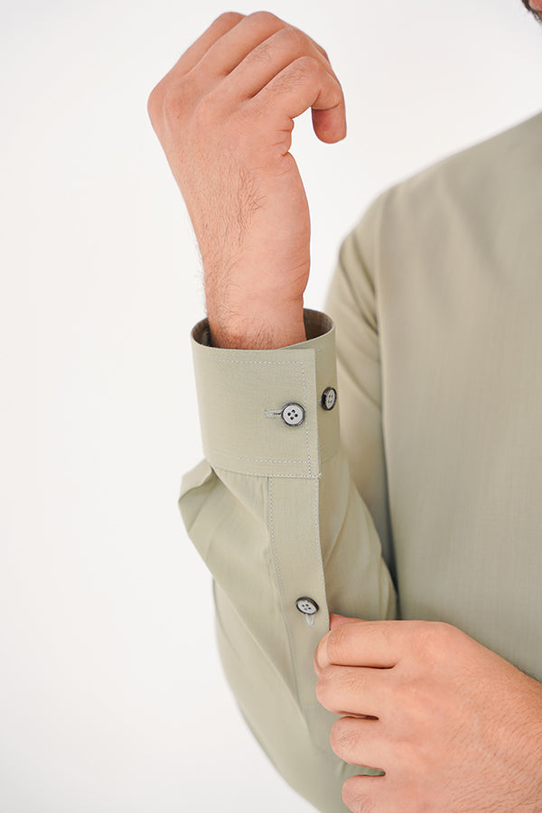 Sage Green Men Stitched Suit with Shirt Collar and Cuff Sleeves